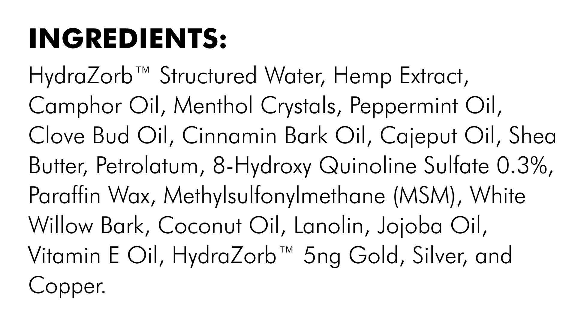 Enhanced Absorption: MSM and HydraZorb™ Structured Water improve penetration for maximum relief and efficacy.
