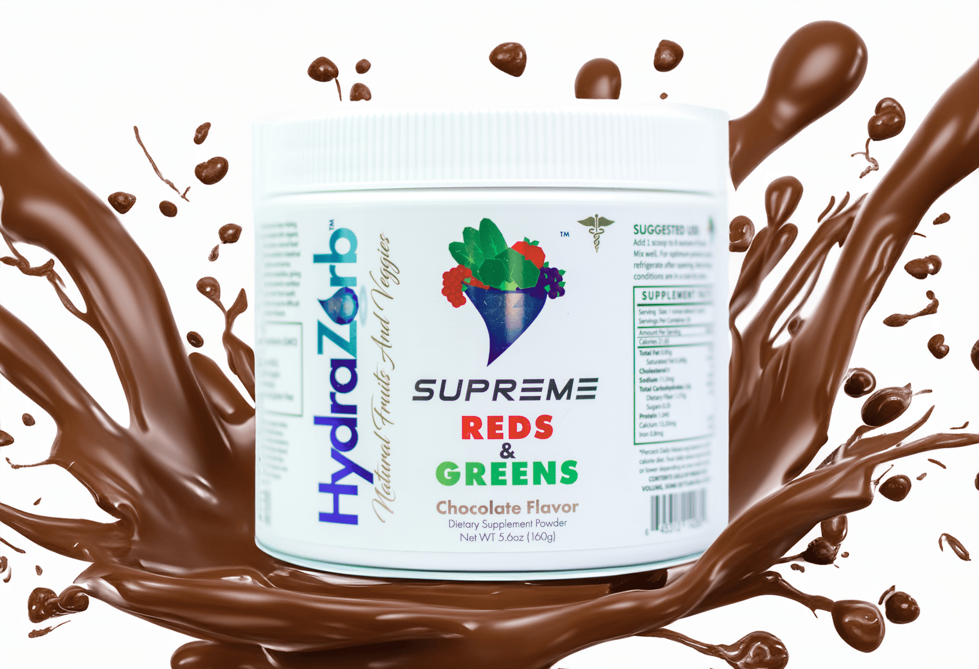 Discover the benefits of HydraZorb™ Supreme Reds and Greens—the delicious, easy way to support your wellness journey in Chocolate or Berry flavor.